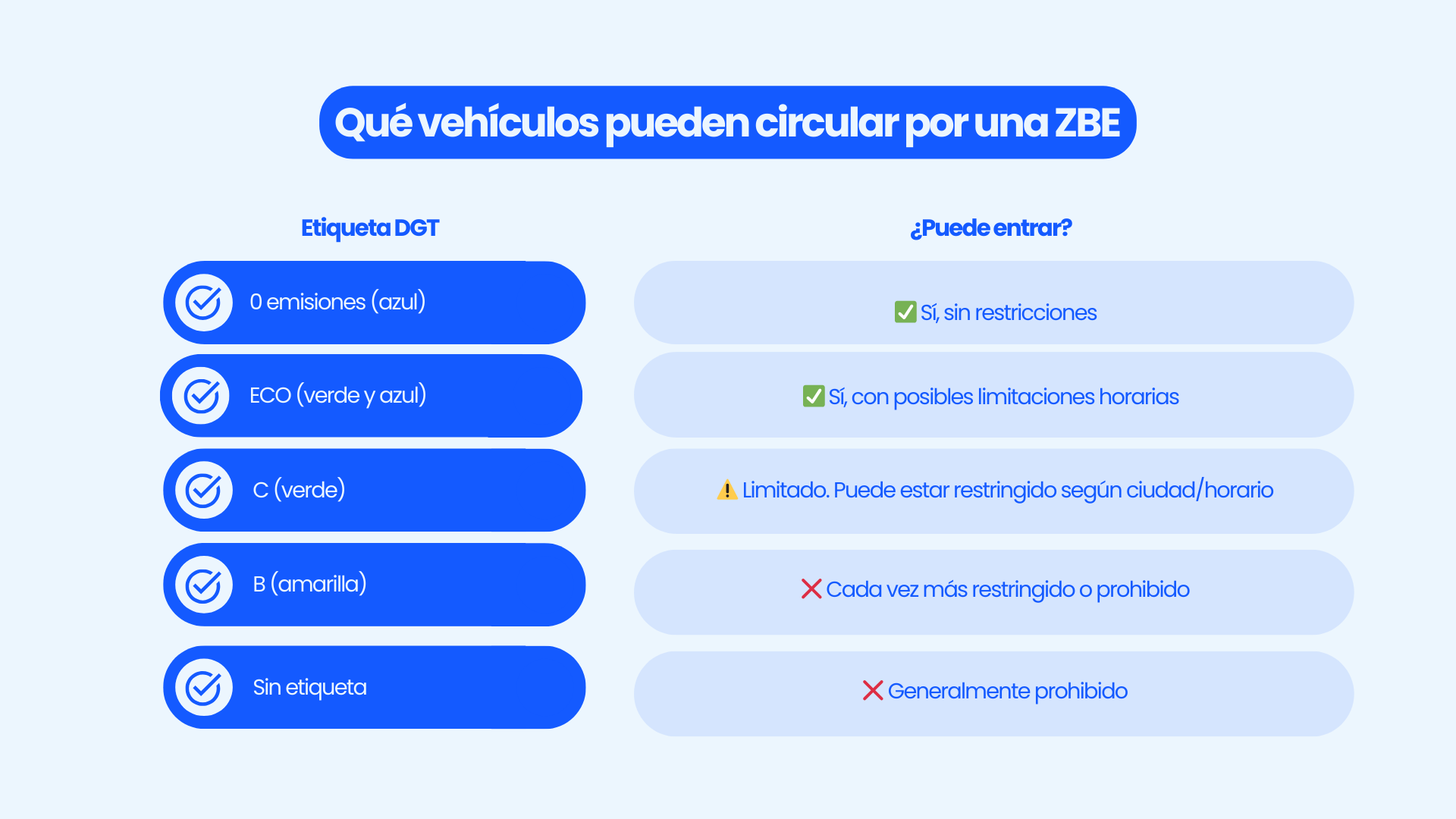 💡 En 2026, muchas ciudades ya aplicarán restricciones a vehículos C en determinadas franjas horarias o zonas específicas.